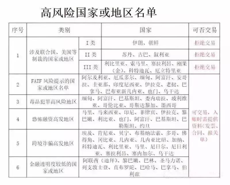 3)定期关注高风险国家名单,随时有可能出现变化。对于明确列入受制裁名单的国家/实体,一般情况下是不建议继续交易的。 4)如果客户在一些敏感的国家,并且之前的汇款比较顺利,那么尽量不要更换银行,经常核查正常的汇款银行,与客户书面约定后续用这家银行付款,避免不必要的风险和纠纷。